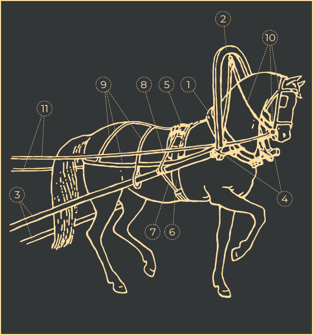 Ohjad (11) – pikk nahast või muust materjalist rihm, mis ulatub hobuse suuraudade küljest juhi kätte ja mille abil toimub hobuse juhtimine.
