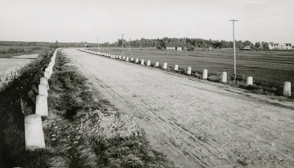 Jelgava-Kalnciema tee Ozolmuiža juures, 1938. Foto Läti Teedemuuseumi arhiivist.