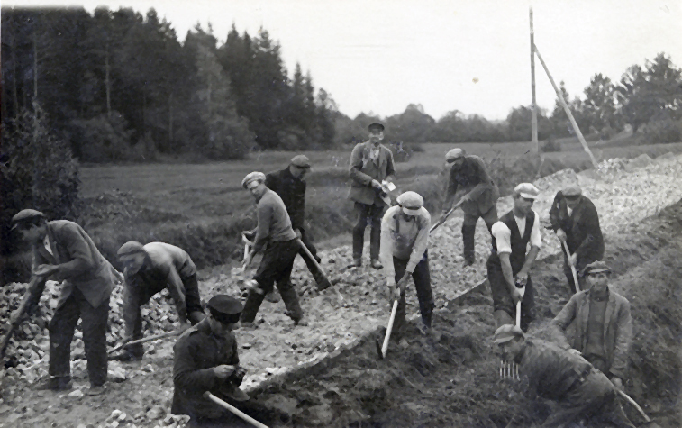Kelias Skaistkalnė–Neretos, 1929 m. Nuotrauka iš Latvijos kelių muziejaus archyvo.