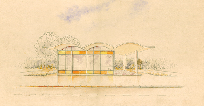 Autopaviljono B-7 projekto eskizas, 1960 m.
