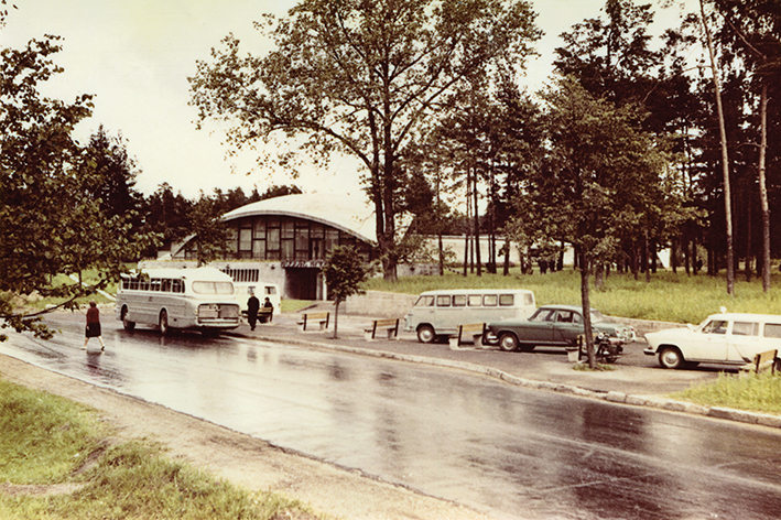 Autopaviljonas B-5 Baluožuose prie Rygos–Pskovo autokelio. 20 a. septintasis dešimtmetis. Nuotrauka iš Latvijos kelių muziejaus.