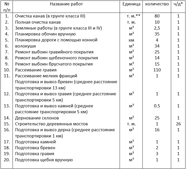 Нормы выработки и виды дорожных работ в подразделении № 9 Дорожного управления Латвийской ССР в 8-часовую смену, 1948-1949 гг. Документ из Латвийского музея дорог.